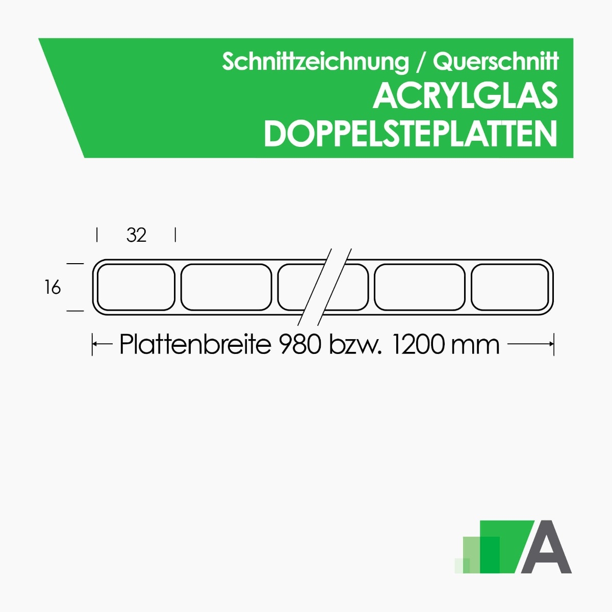 Acrylglas Doppelstegplatte klar 16/32, 16 mm stark, 2-fach - Qualität aus Deutschland